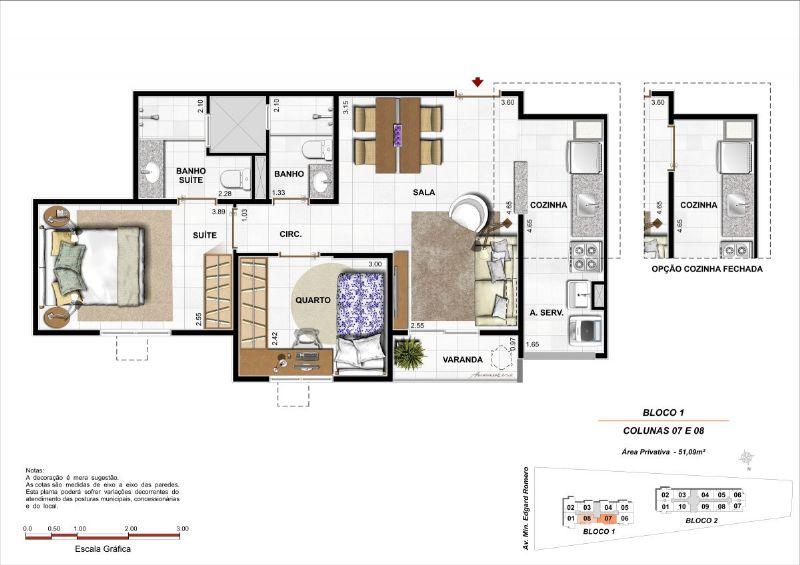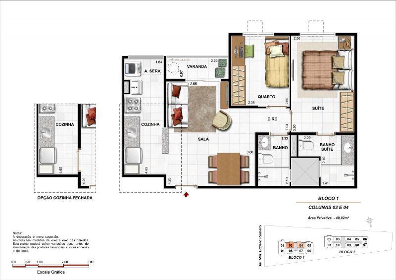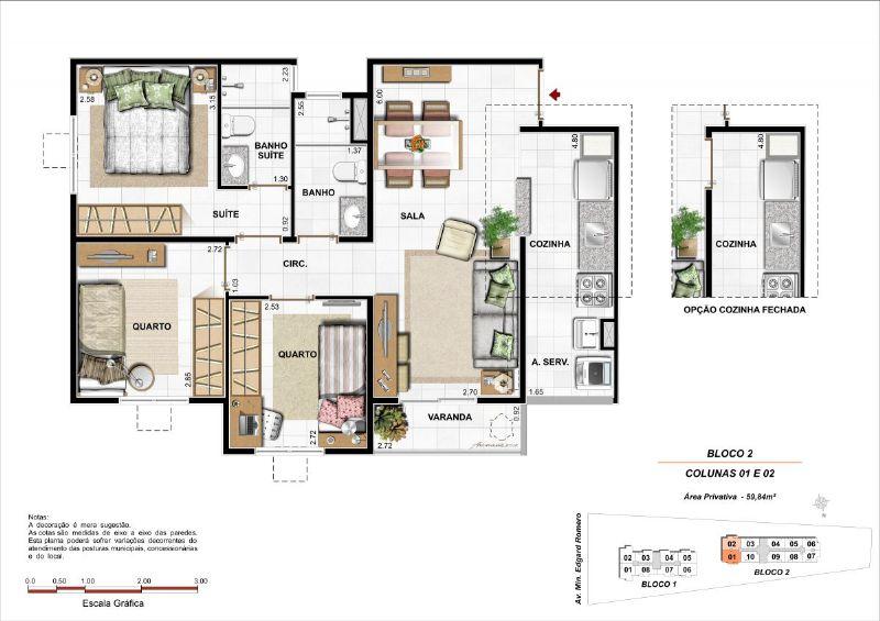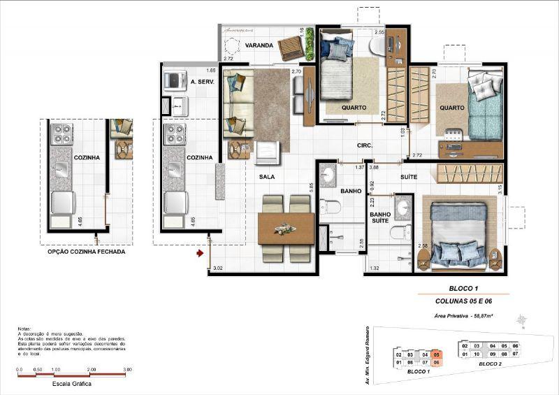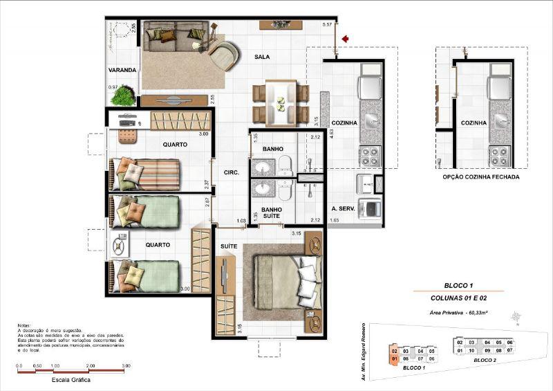 APARTAMENTO 3 QUARTOS COM SUTE, 58,16.